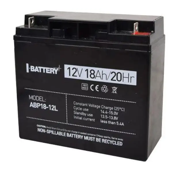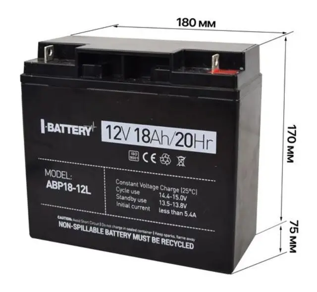 Акумуляторна батарея I-Battery ABP18-12L — це свинцево-кислотний акумулятор, виготовлений за технологією AGM (Absorbent Glass Mat) з ємністю 18А·год та робочою напругою 12 В. У такому типі акумуляторів електроліт абсорбований у скловолоконні сепаратори, а не перебуває у вільному стані, що робить батарею повністю герметичною, безпечною та стійкою до вібрацій.