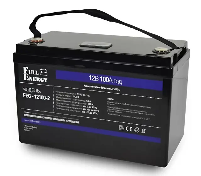 Акумулятор для ДБЖ LiFePO4 Full Energy FEG-12100-2 (C), 12.8В 100А·год (Китай)