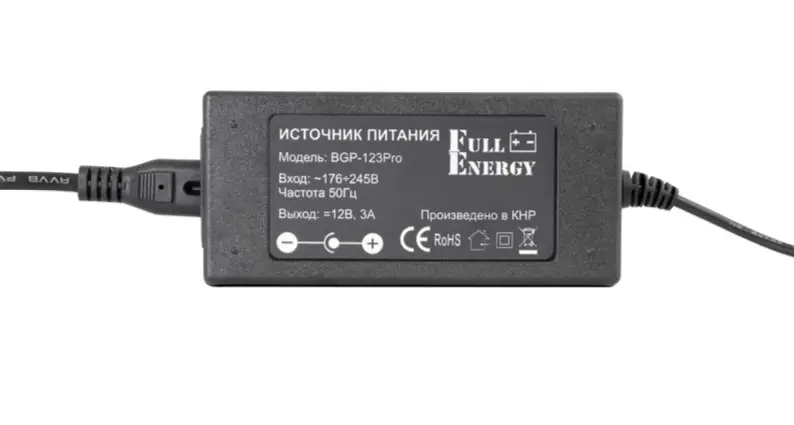 Блок живлення BGP-123 Pro (імпульсний, 12В, 3А; вхідна напруга: AC 220В, вихідна напруга DC 12В, вихідний струм 3А, в пластиковому виконанні зі шнуром і виделкою).