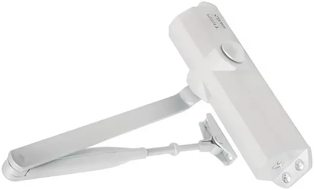TESA CT1800 CT180034 White — накладний дверний дотягувач зі стандартною штангою та без декоративної кришки. Модель належить до класів EN 2/3/4, де сила закривання визначається способом встановлення та позиціонування пристрою. Дотягувач призначений для дверей вагою до 80 кг і максимальною шириною 1100 мм, забезпечуючи плавне та контрольоване закривання стулки.