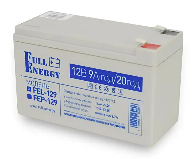 Акумулятор Full Energy FEL-129 — це гелевий свинцево-кислотний акумулятор ємністю 9 А·год та робочою напругою 12 В, який використовується у системах безперебійного живлення (ДБЖ, UPS, інвертори), а також у пультах охоронної сигналізації, телекомунікаційному обладнанні та системах резервного живлення.