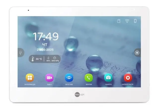 Гібридний відеодомофон Neolight MEZZO Hybrid white 10.1" з Wi-Fi, Full HD, записом відео та аудіо, підтримкою AHD і IP камер, SIP, інтеркомом і microSD до 512 ГБ