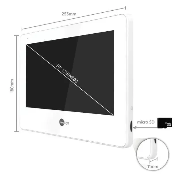Гібридний відеодомофон Neolight MEZZO Hybrid white — це сучасна багатофункціональна система безпеки з великим сенсорним IPS-екраном діагоналлю 10.1 дюймів, що поєднує в собі можливості AHD та IP відеодомофона. Модель підтримує запис відео та аудіо, працює у режимі відеореєстратора, має Wi-Fi, LAN, SIP, інтерком до 10 моніторів і переадресацію виклику на смартфон через фірмовий застосунок NeoLight.