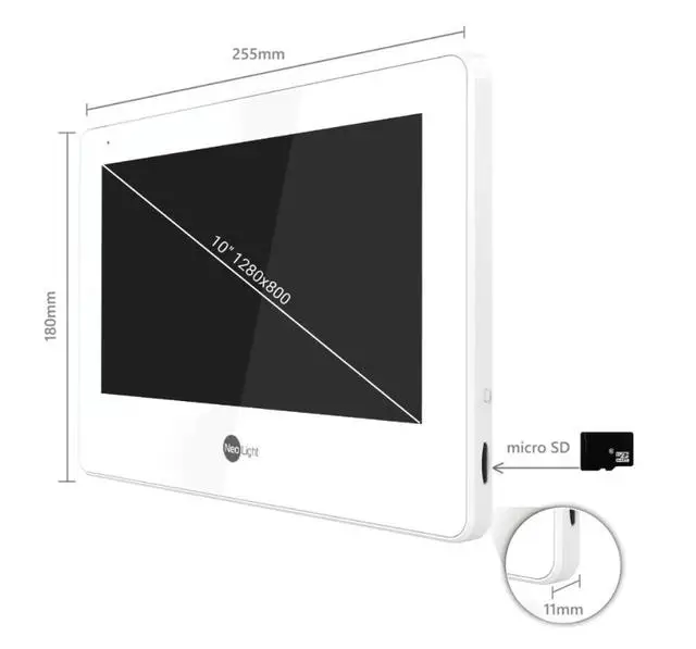Великий IPS-екран 10.1" забезпечує чітке, яскраве зображення з роздільною здатністю 1280×800, а сенсорне керування робить використання інтуїтивним та зручним. Розмова з відвідувачем здійснюється по гучному зв’язку (HandsFree).