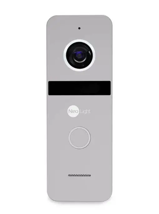 Відеопанель NeoLight SOLO FHD Silver виконана в сріблястому кольорі, має CMOS-матрицю з роздільною здатністю Full HD 1920×1080 і кут огляду 110°. Вона оснащена інфрачервоною підсвіткою (ІЧ) з дальністю дії до 5 метрів, що дозволяє чітко бачити відвідувачів навіть у темряві. Відеопанель підтримує підключення через 4-дротову схему, має реле для керування електрозамком, автоматичне регулювання гучності мікрофона і гучномовця, а також підсвічування кнопки виклику в режимі очікування. Живлення панелі — DC 12 В від домофона.