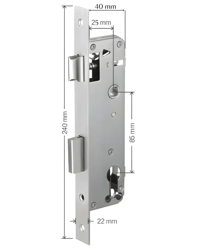 Корпус врізного замка PES 25х85 призначений для комплектації смарт-замками та електронними системами доступу. Підходить для дверей з євроциліндром. Рекомендується уточнювати сумісність із конкретною моделлю смарт-замка перед встановленням.