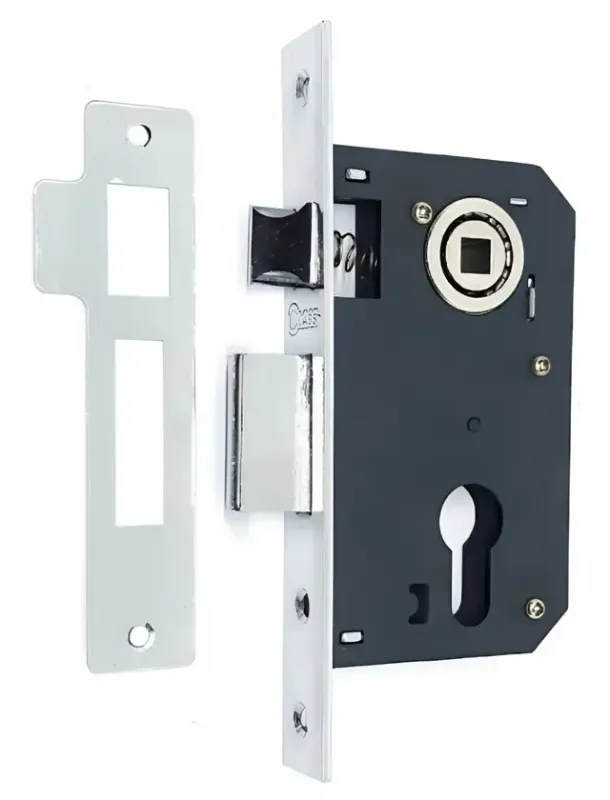 Корпус замка виготовлений із міцної сталі та є взаємозамінним із моделями серії CLASS 9011-3R. Торцева планка має покриття CP (хром).