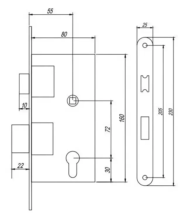 - Backset: 55 мм