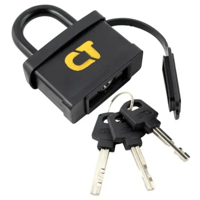 Замок виготовлений з комбінації сталі та пластику, що забезпечує базову міцність конструкції та зручність у щоденній експлуатації. Корпус виконаний у чорному кольорі, що робить виріб практичним для зовнішнього використання.