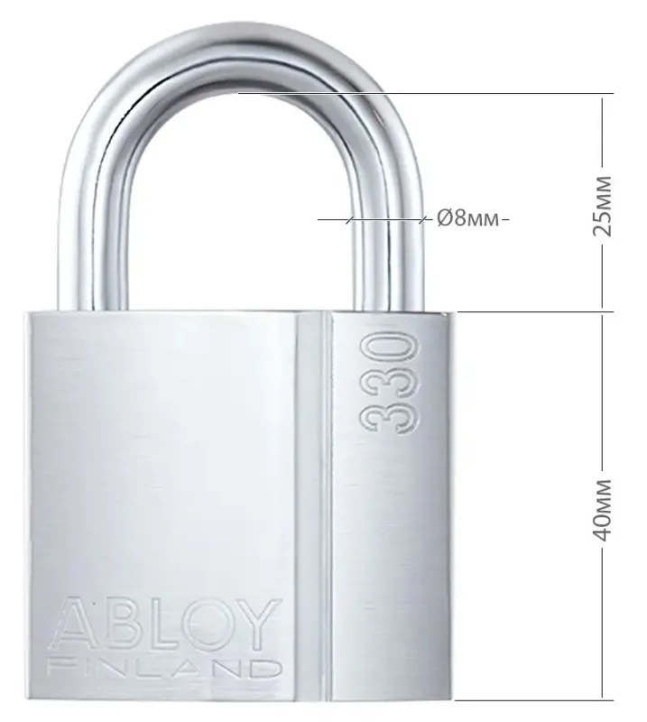 Навісний замок відкритого типу ABLOY PL330 SENTRY BA66EE 2KEY 25 мм 8 мм хром