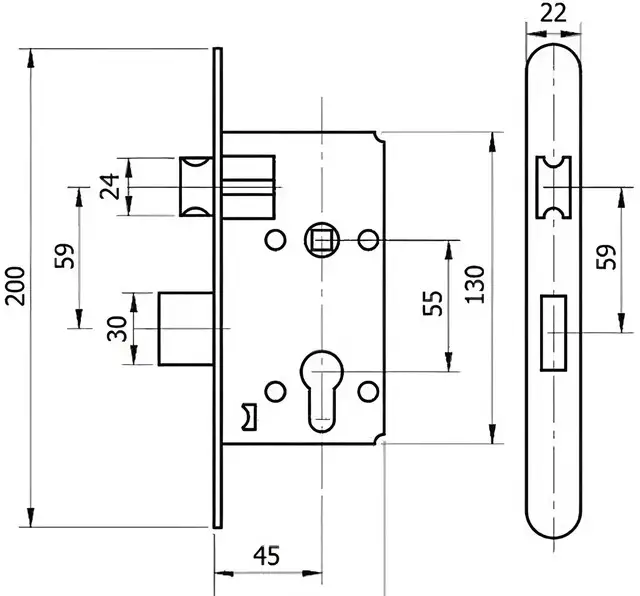 при повороті ключа висувається ригель із максимальним виходом 22 мм.