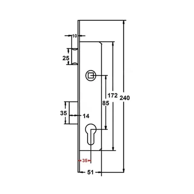 Вузькопрофільний врізний основний замок CLASS 153P-35 (BS35мм 85мм) планка 16мм