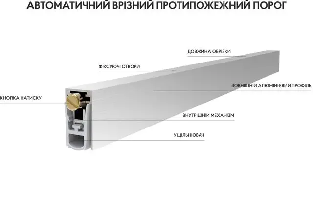 Порог имеет подтвержденные огнестойкие характеристики по норме EI-60, что гарантирует защиту от сильного задымления и значительно замедляет проникновение прямого огня. Благодаря усовершенствованной форме уплотнителя из высококачественного термостойкого силикона достигается высокий уровень энергосбережения и шумоизоляции до 48 дБ.