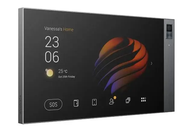 Панель оснащена 8-дюймовым сенсорным дисплеем 1280×800, обеспечивающим чёткое и комфортное отображение информации. Встроенная 5-мегапиксельная камера с конфиденциальной шторкой гарантирует безопасную видеосвязь и защиту приватности. Поддержка SIP 2.0 позволяет использовать панель как интеллектуальный домофон с вызывными панелями Akuvox, с возможностью просмотра камер видеонаблюдения прямо на экране.