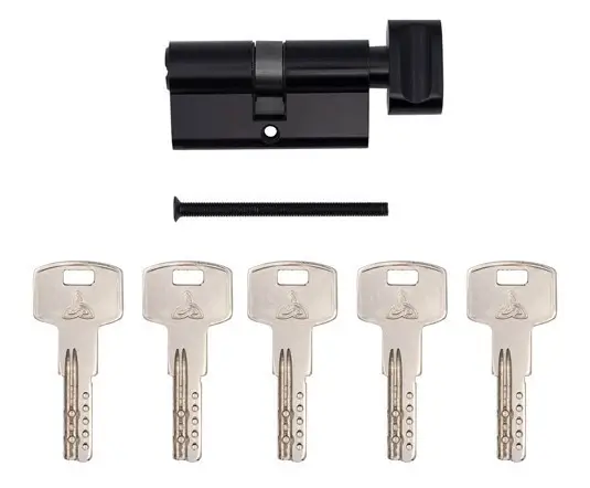 Цвет покрытия чёрный матовый гармонично дополняет дверную фурнитуру тёмных оттенков и подчёркивает современный стиль интерьера. Обычно такие цилиндры используют для межкомнатных дверей или для входных, где не требуется высокий уровень взломостойкости, но важна надёжность и простота эксплуатации.