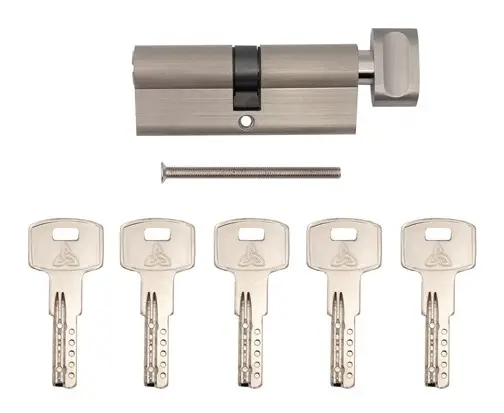 Цвет покрытия никель подходит для дверной фурнитуры светлых оттенков. Цилиндры используют в межкомнатных дверях, а также во входных, где не требуется повышенная взломостойкость.