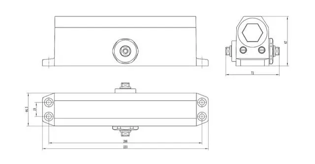 Дверной доводчик Dortec DT-64H предназначен для автоматического закрывания дверей с массой полотна 65–85 кг и оснащен функцией фиксации двери в открытом положении под углом 85°. Модель имеет рычажную (коленную) тягу, что обеспечивает надежную передачу усилия и стабильную работу механизма. Доводчик универсальный — подходит для установки как на левые, так и на правые двери.