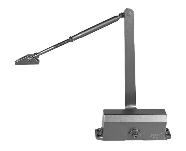 Дверной доводчик Dortec DT-63 для дверей 45–65 кг, IP65, с рычажной тягой, графит
