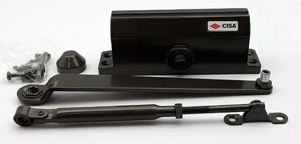 Дверные доводчики CISA заправлены специальным минеральным маслом и имеют термостатические клапаны для регулирования давления масла при изменении температуры в помещении.