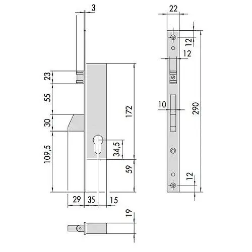 CISA 46230.35 — это врезной замок (механизм), призначений для входной распашной двери из алюминия или стали, а также может устанавливаться в ковриках благодаря узкому корпусу толщиной 19 мм. Замок выполняет функцию основного (нижнего) и управляется цилиндром стандарта EURO DIN(сердцевина приобретается отдельно).