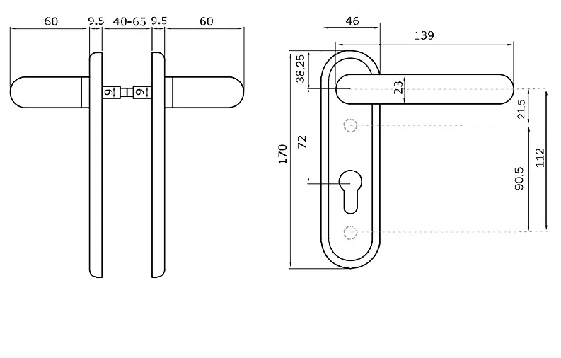 - Крепление: болты М5 для дверей толщиной до 63 мм;