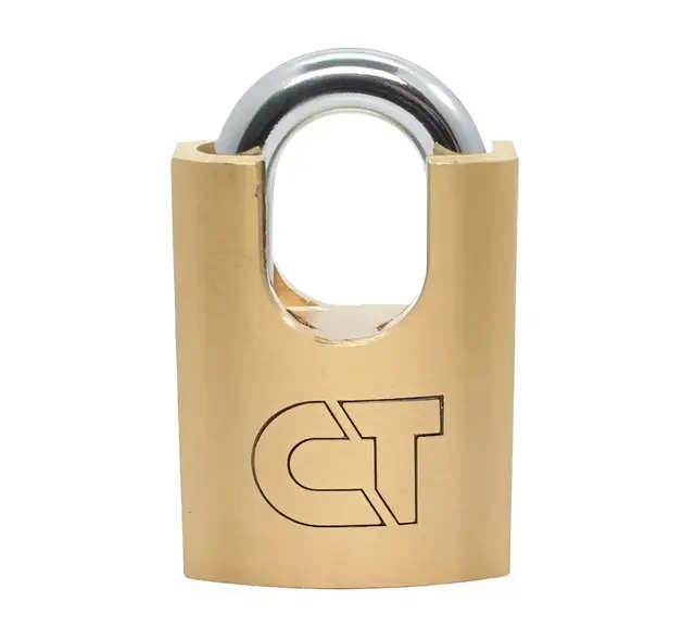 Корпус изготовлен из латуни, что обеспечивает устойчивость к коррозии и длительный срок эксплуатации. Замок имеет подвесной принцип крепления, что делает его пригодным для бытового и хозяйственного использования.