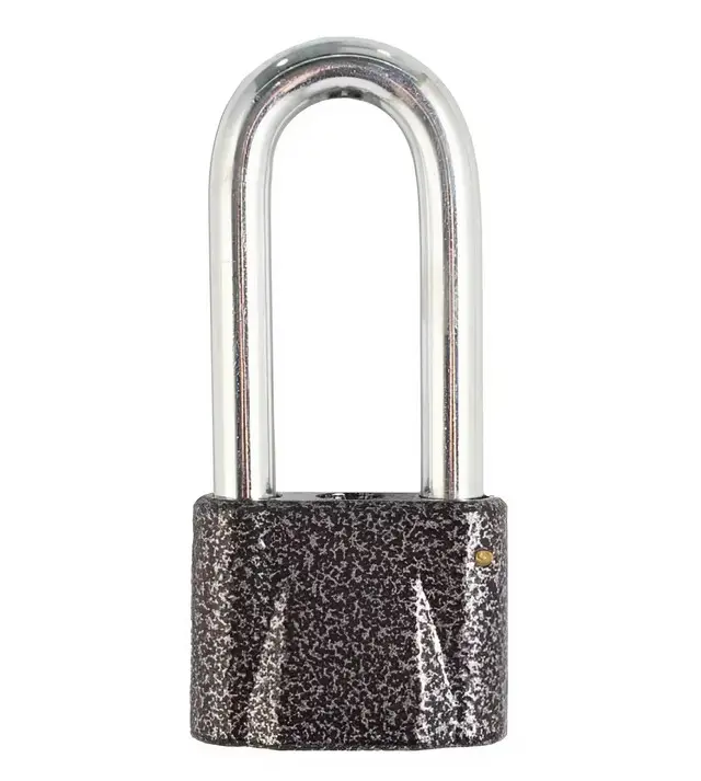 Замок имеет открытую удлинённую дужку, что обеспечивает удобство установки на конструкциях с нестандартным расстоянием между элементами крепления. Корпус изготовлен из стали, что обеспечивает прочность и устойчивость к механическим нагрузкам.