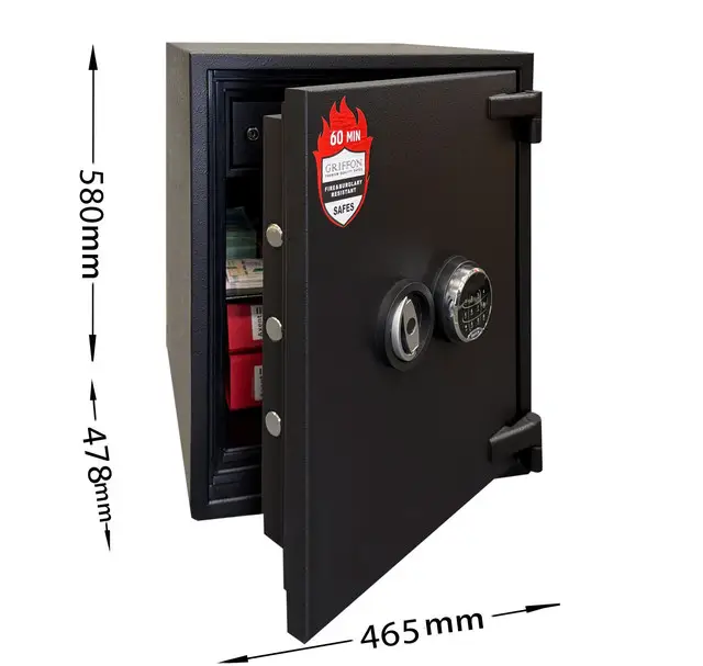 - Сейф GRIFFON FRS.57.E BLACK предназначен для защиты документов, наличных, электронных носителей и других ценностей в случае пожара.