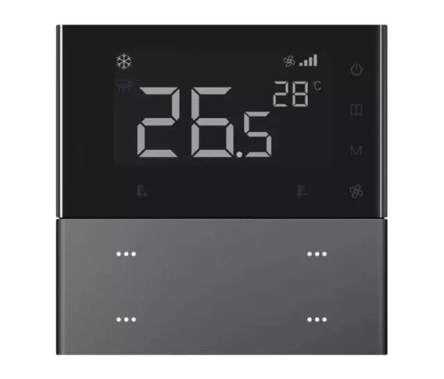 Панель поддерживает переключение между разными режимами работы, что позволяет легко контролировать климатические устройства — кондиционер, вентилятор приточного воздуха или подогрев пола.
