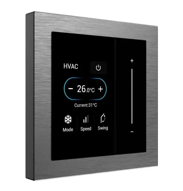 Akubela K32-M-EU — это интеллектуальная сенсорная панель управления серии Aura, разработанная для систем умного дома с поддержкой KNX и облачной экосистемы Akubela Cloud. Устройство оснащено 2-дюймовым сенсорным дисплеем и объединяет управление освещением, климатом, вентиляцией, шторами и сценариями в одном компактном модуле.