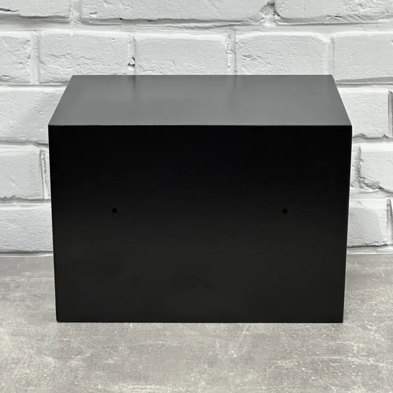 Покрытие выполнено методом порошкового напыления (RAL 9005, черный цвет), что придает сейфу эстетичный вид и защищает его от коррозии.