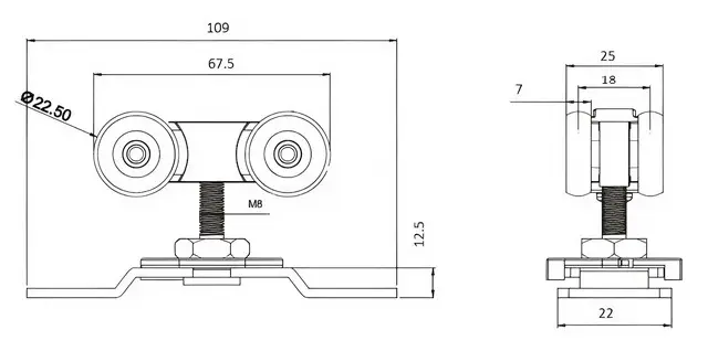 Система проста в монтаже: ролики крепятся к верхнему торцу дверного полотна саморезами. Благодаря надёжной конструкции и правильному распределению нагрузки система обеспечивает длительный срок службы.