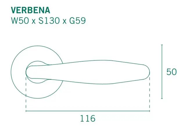 Aprile Verbena R 7S – дверная ручка на тонкой круглой розетке толщиной7 мм, предназначенная как для входных, так идля межкомнатных дверей. Подходит для дверей толщиной до 44 мм.