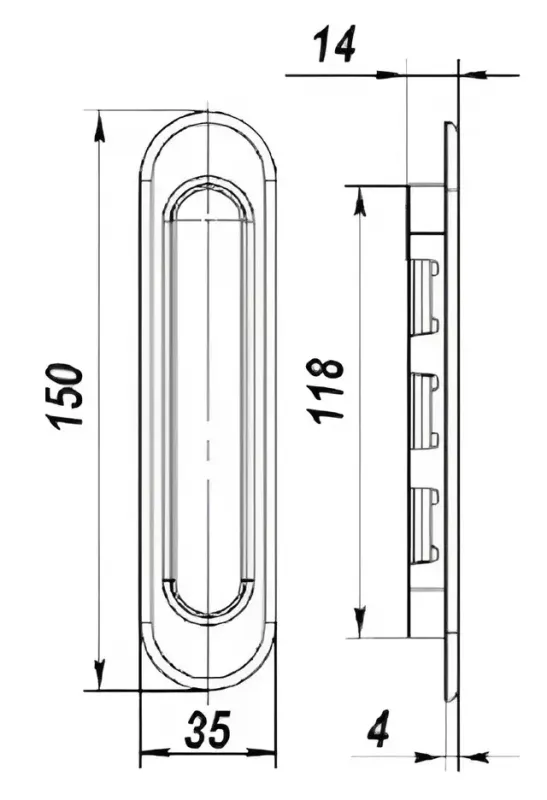 Ручка для раздвижных дверей овальная, KEDR BLACK MAT, черная (пара)