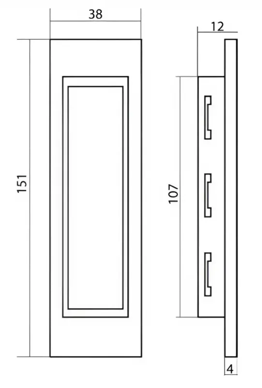 Прямоугольные ручки KEDR предназначены для установки на межкомнатные двери раздвижного типа. Устанавливаются врезкой в дверное полотно, благодаря чему не выступают за его край и не мешают полному закрыванию.