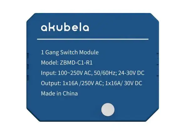 Akubela ZBMD-C1-R1 — это одноканальный умный выключатель-реле, предназначенный для дистанционного управления освещением или другими электрическими нагрузками через систему «умного дома». Работает с протоколом ZigBee, благодаря чему легко интегрируется в централизованные хабы и позволяет создавать сценарии автоматизации.