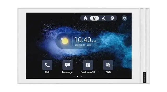 Сенсорный экран с разрешением 1280×800 обеспечивает высокую четкость отображения. Поддерживаются регулировка яркости, громкости, цветности и контрастности, а также функции фоторамки, интеркома, MP3-мелодий вызова, автоответчика и даже квадратора для отображения нескольких источников видео.