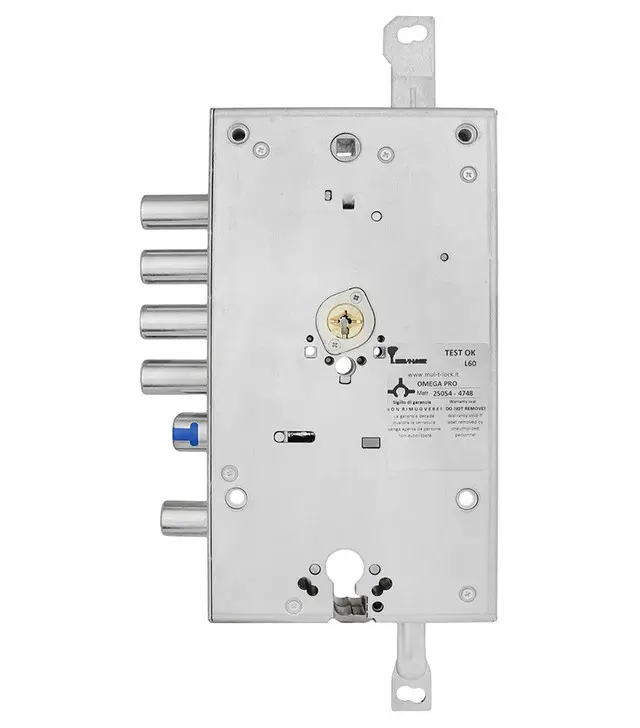 Замок MUL-T-LOCK 3-WAY OMEGA PRO+DIN OFMPB30328L — это врезной 3-направленный замок с двумя системами запирания. Модель основана на платформе OMEGA PRO и сочетает механизм OMEGA+DIN. Замок имеет уникальный запатентованный механизм Omega с размещением пинов в трёх плоскостях. Цилиндровый механизм стандарта EuroDIN управляет дополнительным ригелем и блокирует основной замок. Привод ригелей выполнен по запатентованной шестерёнчатой схеме.