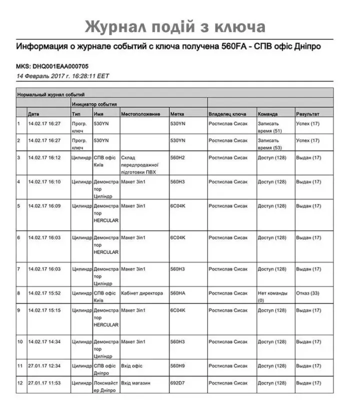 - Аудит событий – журнал контактов ключа с замком фиксируется в системе, что позволяет контролировать доступ в помещение