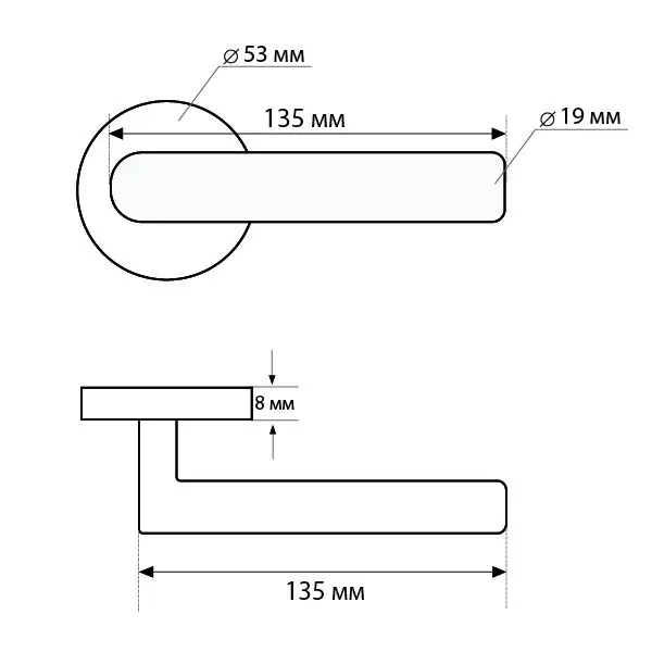Монтаж ручок простий і зручний: кріпильні отвори приховані під розетою. Якщо двері мають більшу товщину, ніж стандартна, потрібно додатково придбати подовжувач.