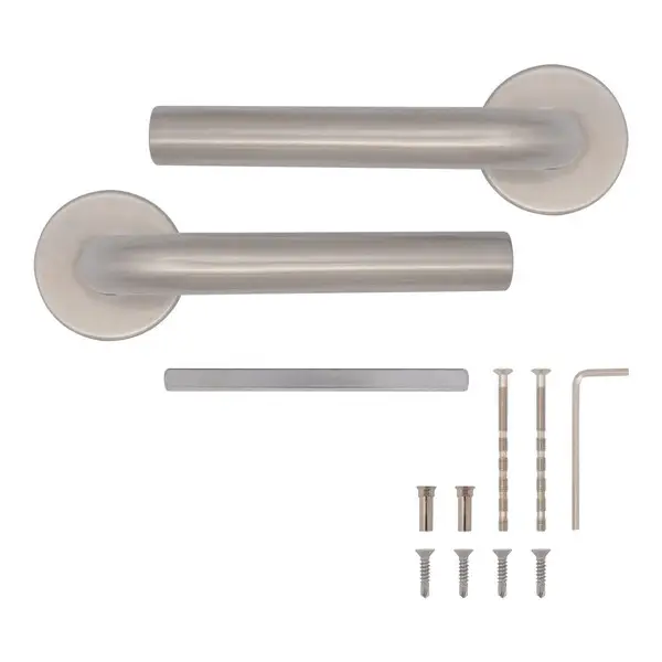 Ручки виготовлені з нержавіючої сталі, що дозволяє використовувати їх за будь-яких погодних умов. Вони зносостійкі та міцні, а завдяки ергономічній формі і матовій поверхні забезпечують зручність у щоденному користуванні. Округлий дизайн і колір матової нержавіючої сталі добре поєднуються з інтер’єрами офісів та інших громадських приміщень з інтенсивним потоком людей.