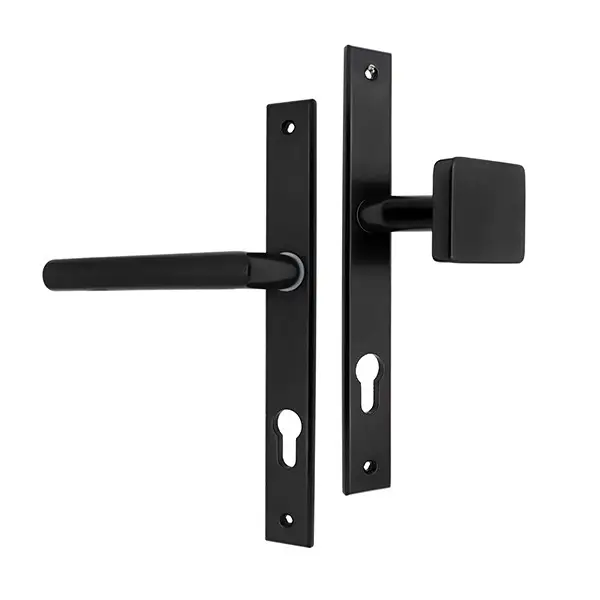 Ручки на планці ABARO Monaco FM фіксована-натискна, чорний — це універсальна фурнітура для вхідних дверей і хвірток, сумісна з електромеханічними та електромоторними замками. Модель має фіксовану зовнішню та натискну внутрішню частину, що робить її зручною у використанні для систем контролю доступу (СКУД), домофонів і вхідних груп з обмеженим доступом. Ручки виготовлені з нержавіючої сталі, тому відзначаються зносостійкістю, стійкістю до погодних умов і тривалим терміном служби. У конструкції відсутня пружина — робота здійснюється від пружини замка.ABARO Monaco підходять для лівих і правих дверей, оскільки натискна частина переставляється залежно від сторони відкривання. Вишукане чорне покриття робить модель ідеальним рішенням для дверей у стилі хай-тек або сучасного мінімалізму.