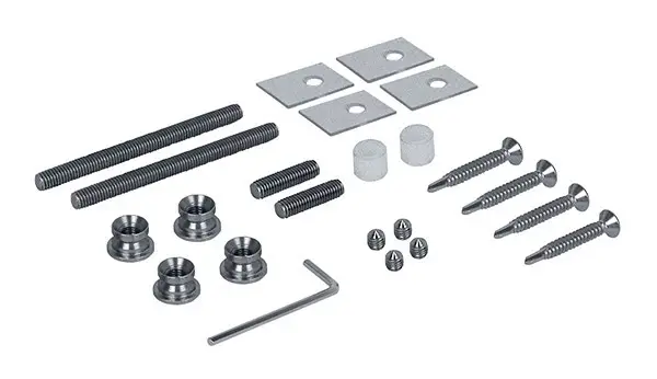 Монтаж виконується через наскрізні отвори за допомогою комплектних елементів — шпильок, втулок і гужонів. Конструкція дозволяє встановлювати кожну половинку окремо, що зручно у випадках, коли немає можливості зробити наскрізне свердління дверного полотна. Усі необхідні кріплення входять до комплекту.