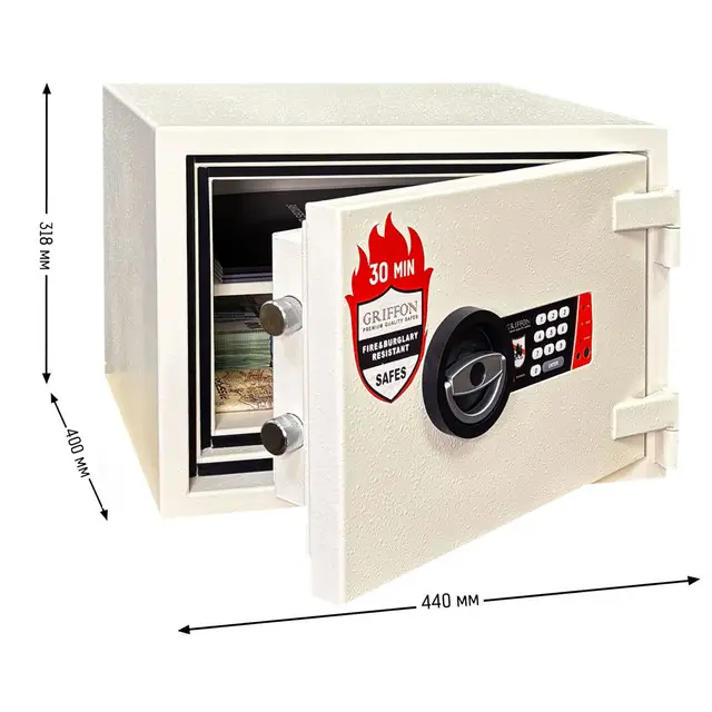 - Новий модельний ряд 2026 року! Сейф GRIFFON FRSL.30.E CREAM призначений для захисту документації, печаток, договорів, готівки та інформаційних носіїв.