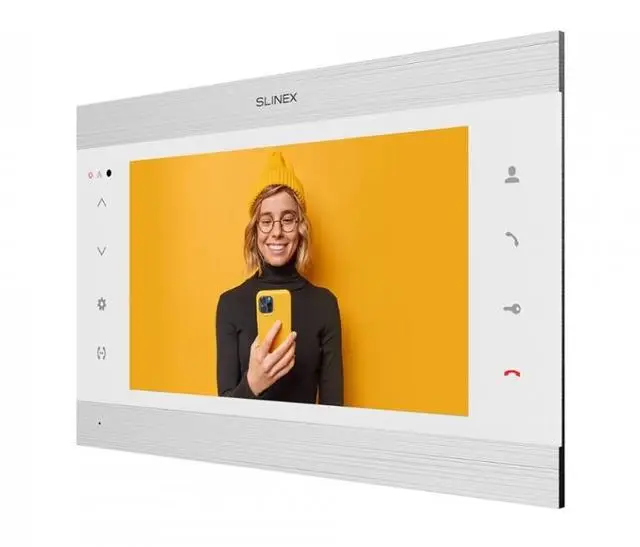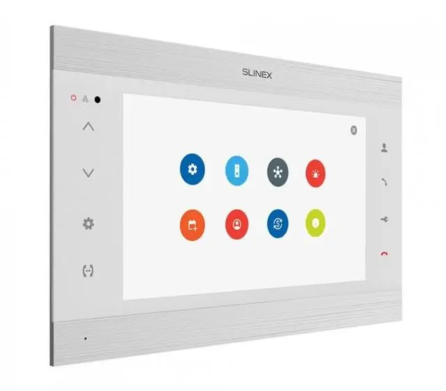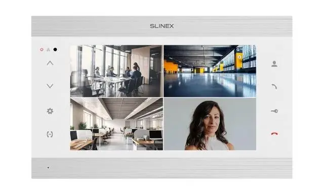 Slinex SL-10N Cloud (silver+white) обладнаний IPS-екраном 1024×600 пікселів, який забезпечує чітке зображення та реалістичну передачу кольорів. Керування відбувається за допомогою сенсорних кнопок, розташованих на лицьовій панелі. Пристрій оснащений вбудованим блоком живлення, споживає 21 Вт, працює від AC 100–240 В, а робоча температура становить від –10°C до +55°C.