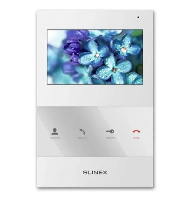 Відеодомофон Slinex SQ-04 white — це сучасний переговорний пристрій, призначений для контролю доступу в квартиру, приватний будинок або офіс. Модель оснащена кольоровим TFT-дисплеєм діагоналлю 4.3 дюйма та сенсорними кнопками керування. Домофон забезпечує якісне зображення з роздільною здатністю 480×272 пікселі, має режим гучного зв’язку (HandsFree) та підтримує підключення двох відеопанелей або однієї відеопанелі та однієї аналогової відеокамери.