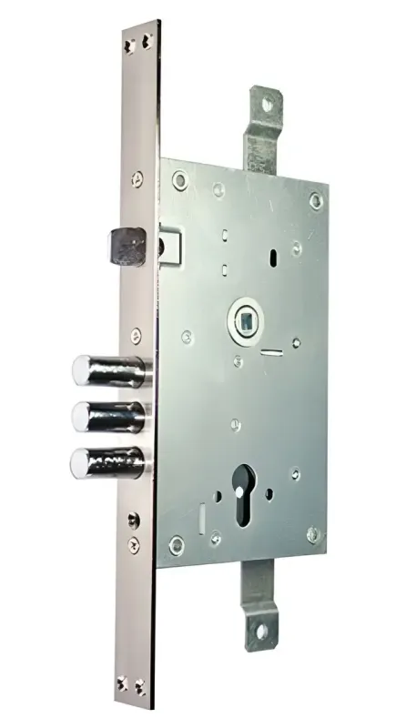 Корпус виготовлений з пофарбованої сталі, ригелі виконані з хромованої сталі. Замок відноситься до 4 класу безпеки і забезпечує високий рівень захисту вхідних дверей. Для роботи потрібен циліндровий механізм (у комплект не входить).