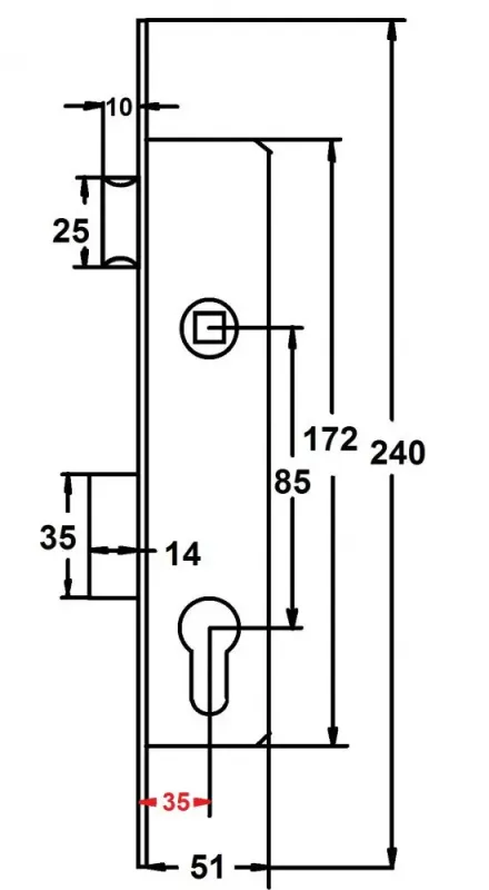 Корпус замка CLASS 153-35 належить до серії вузькопрофільних врізних циліндричних замків і використовується для встановлення в алюмінієві та металеві двері з вузьким профілем, а також у профільні хвіртки. Завдяки компактним розмірам і глибині посадки (Backset 35 мм), замок можна встановлювати у вузькі дверні профілі без додаткової доробки.