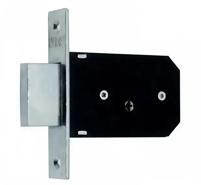 За фіксацію відповідає прямокутний сталевий ригель із гальванічним покриттям, яке захищає його від корозії та подовжує строк служби замка. Керування здійснюється за допомогою хрестоподібного ключа.