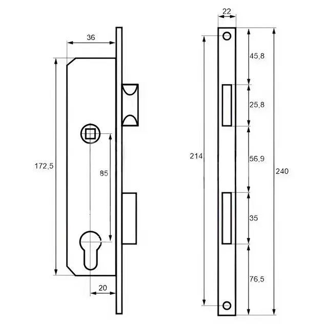 Корпус замка CLASS 153-20 належить до серії вузькопрофільних врізних циліндрових замків і застосовується для встановлення в алюмінієві та металеві двері з вузьким профілем, а також у профільні хвіртки. Завдяки компактним розмірам і глибині посадки (Backset 20 мм), замок можна встановлювати в вузькі дверні профілі без додаткового доопрацювання.